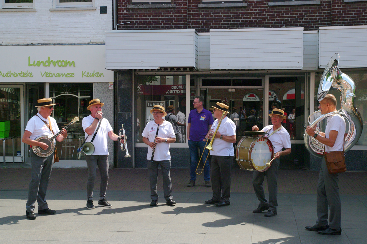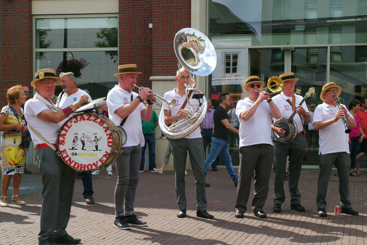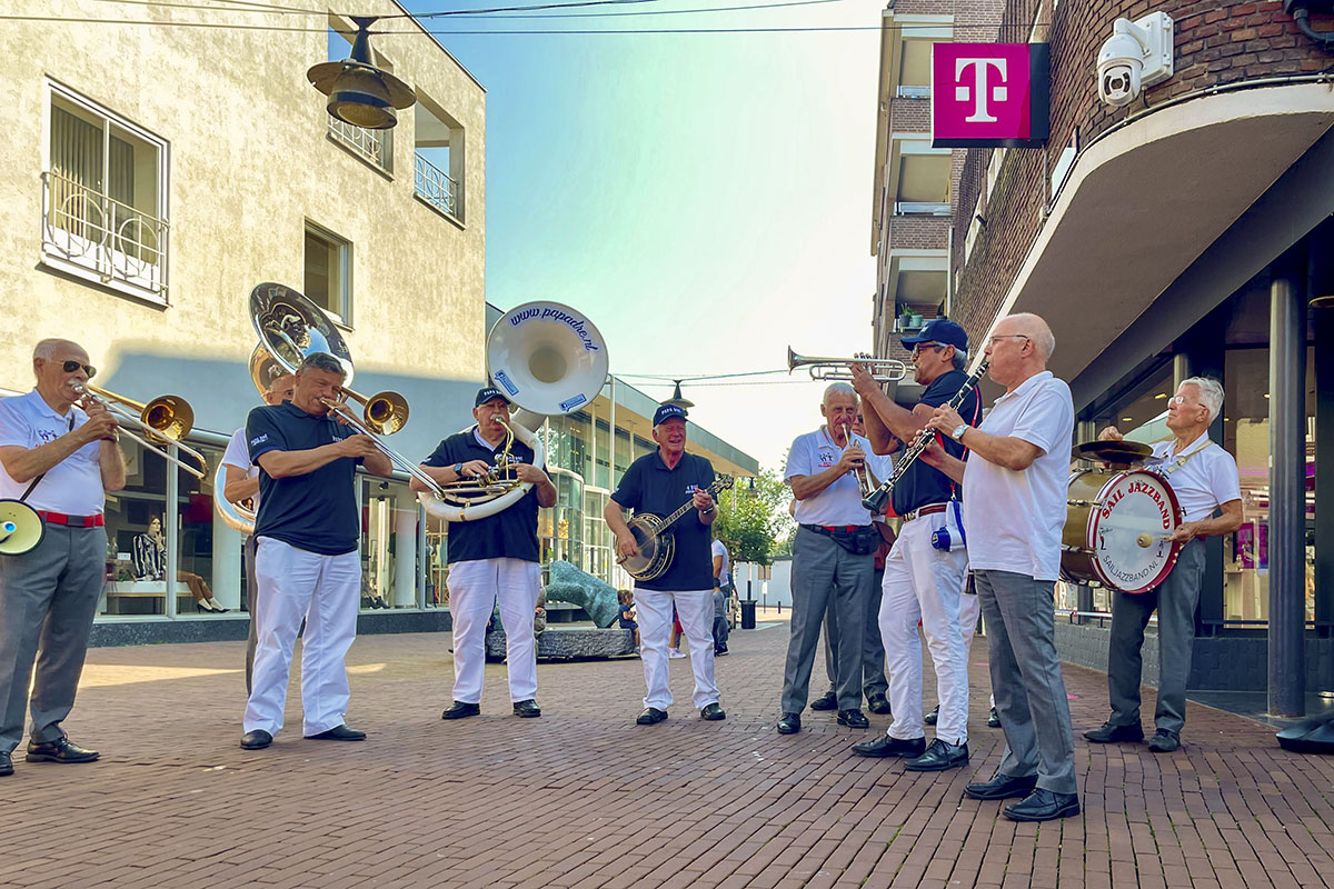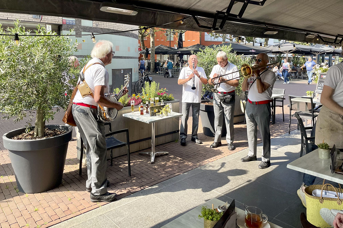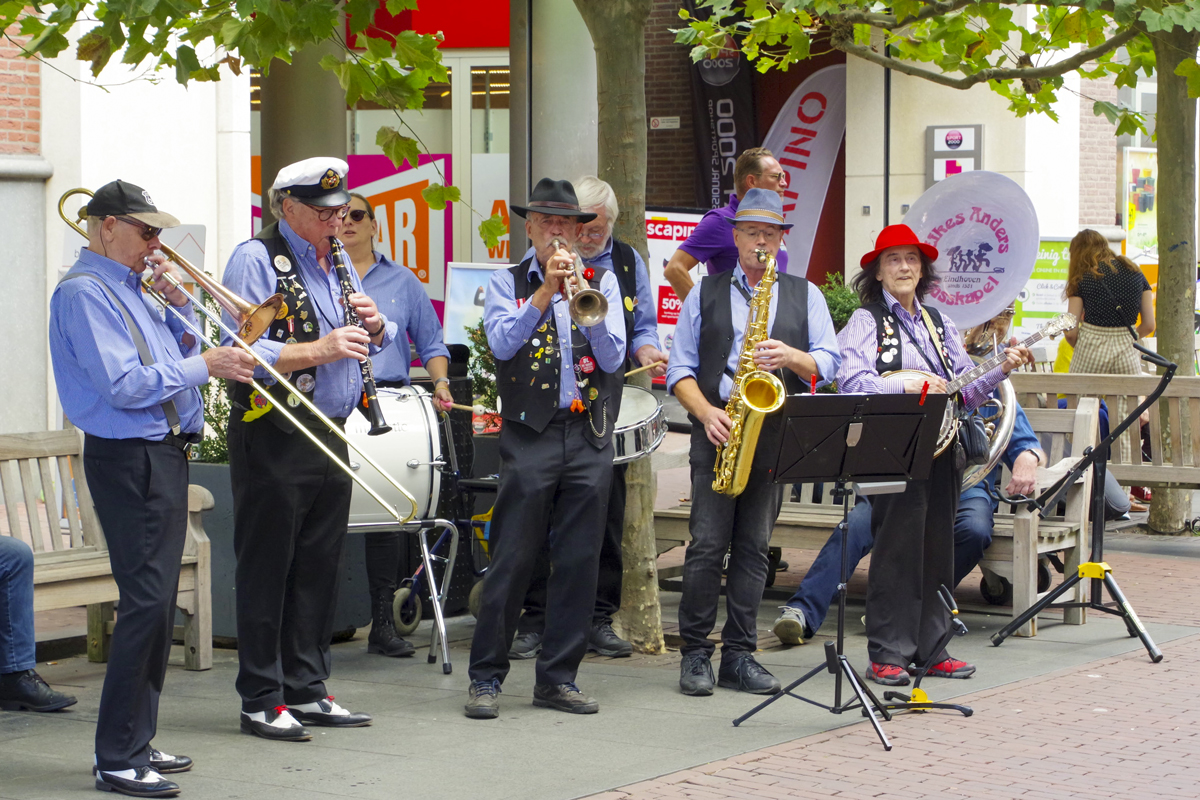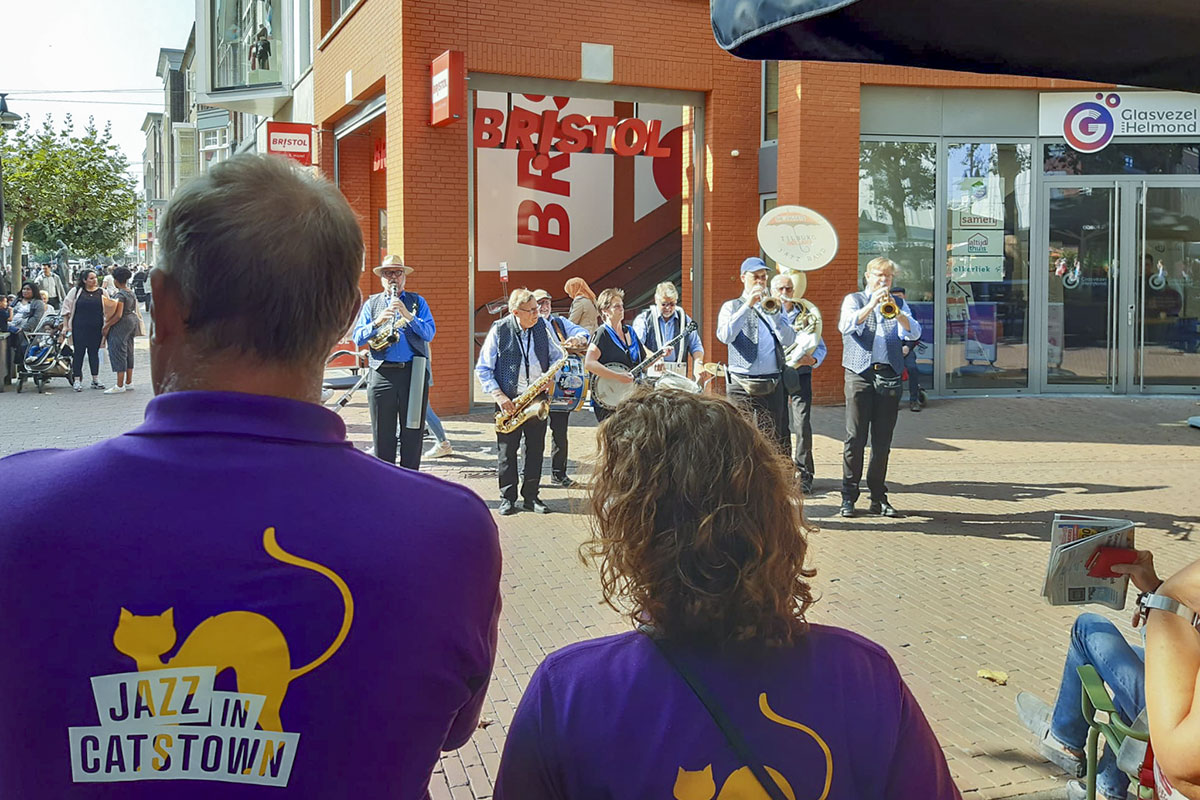 Jazz verbond generaties in Helmond dit weekend tijdens Jazz in Catstown. Een straatorkest met oudere muzikanten deed vrolijk mee, terwijl de 19-jarige Mick Vermeulen als toehoorder genoot van de muzikale improvisaties. Het liet zien dat jazzmuziek voor alle leeftijden is. Jazzmuzikanten zorgen voor een heerlijke sfeer in de binnenstad van Helmond, terwijl de terrassen goed gevuld zijn.