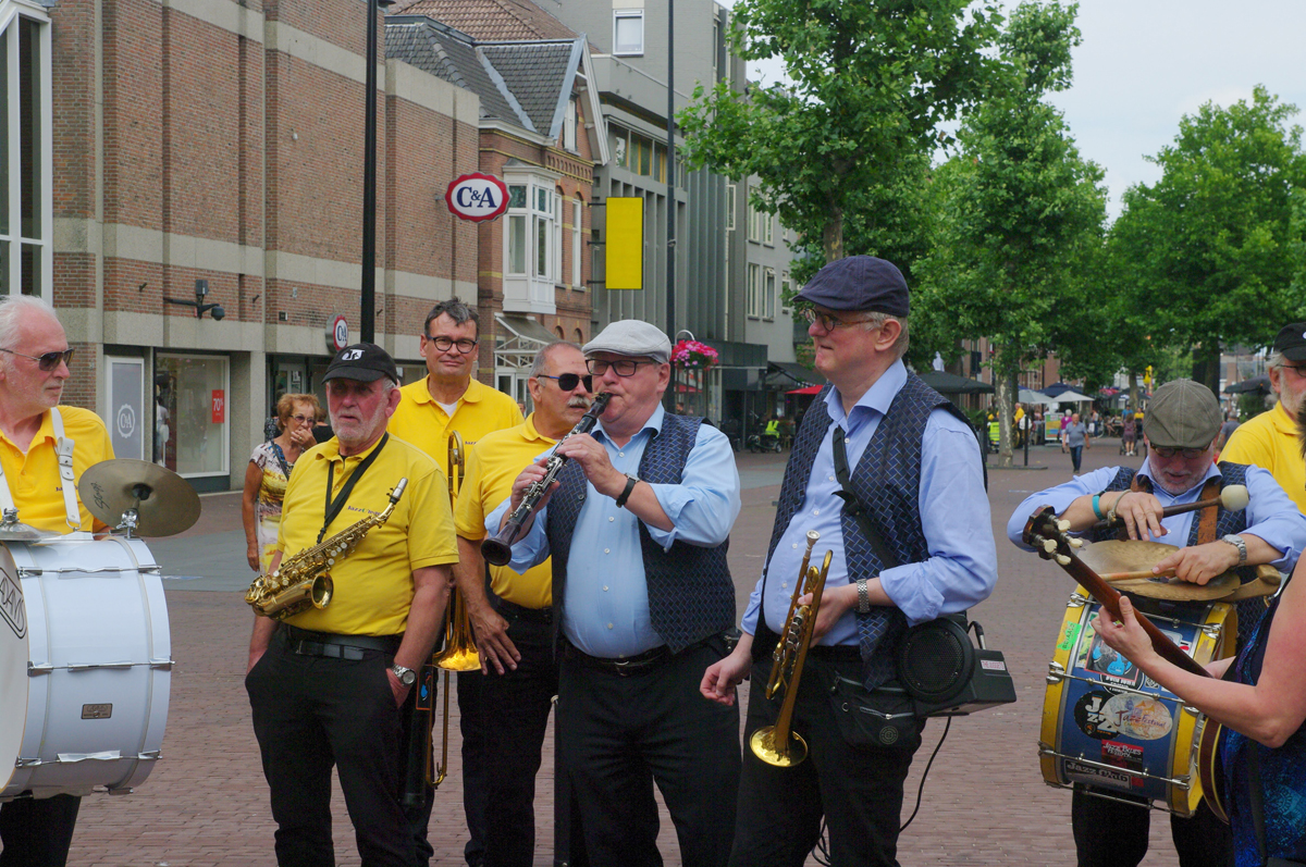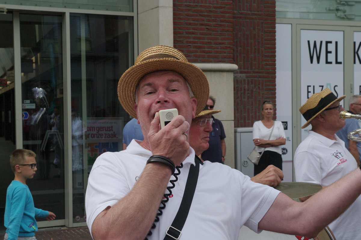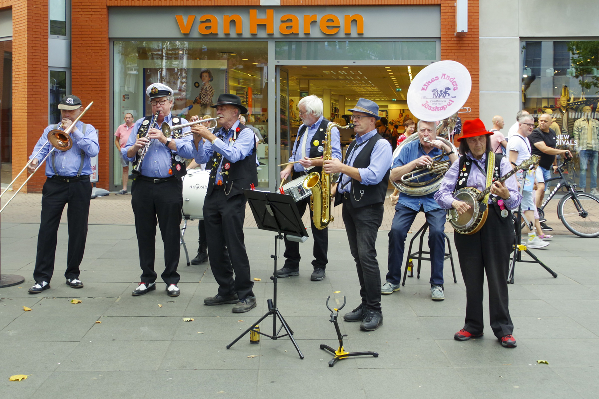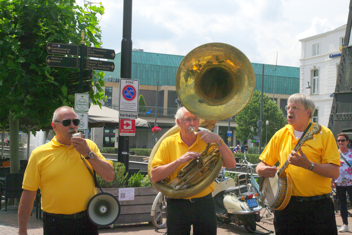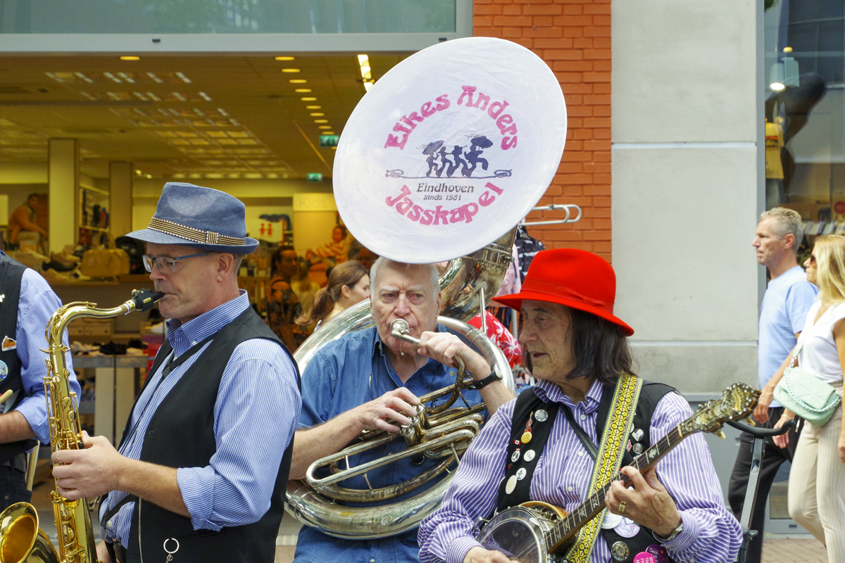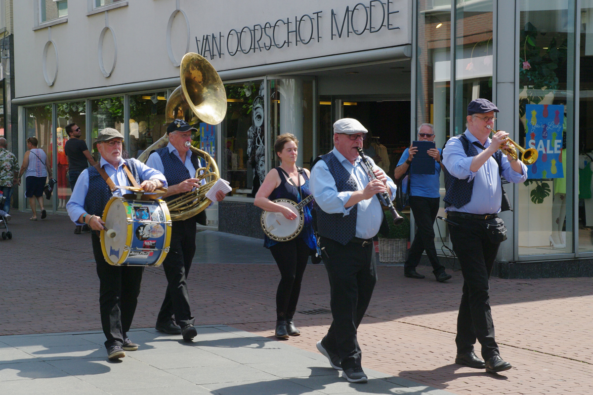 Jazz verbond generaties in Helmond dit weekend tijdens Jazz in Catstown. Een straatorkest met oudere muzikanten deed vrolijk mee, terwijl de 19-jarige Mick Vermeulen als toehoorder genoot van de muzikale improvisaties. Het liet zien dat jazzmuziek voor alle leeftijden is. Jazzmuzikanten zorgen voor een heerlijke sfeer in de binnenstad van Helmond, terwijl de terrassen goed gevuld zijn.