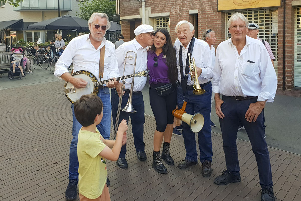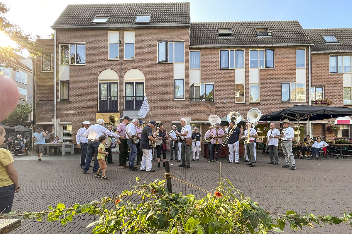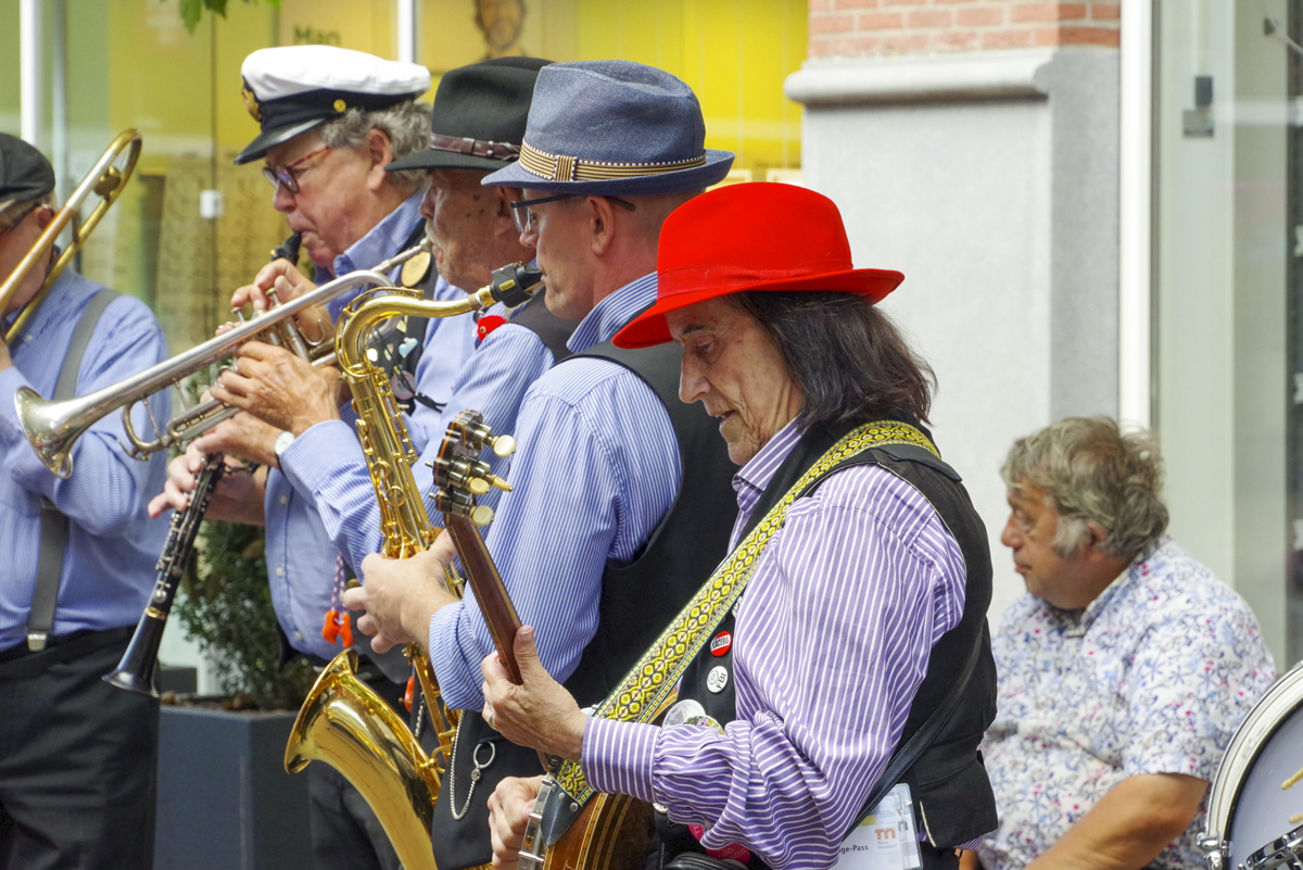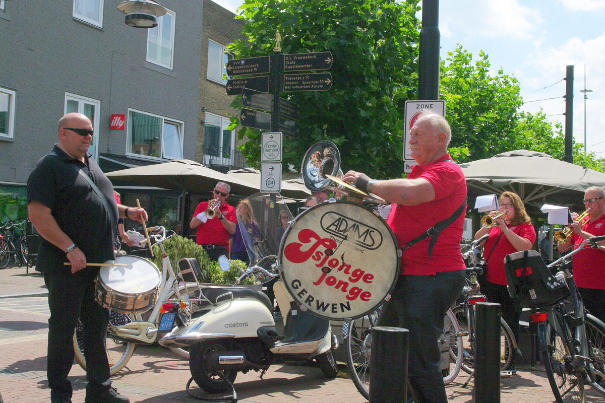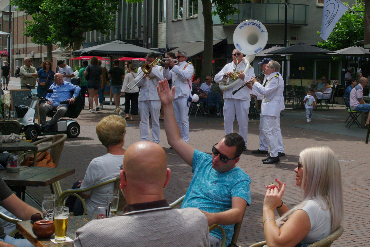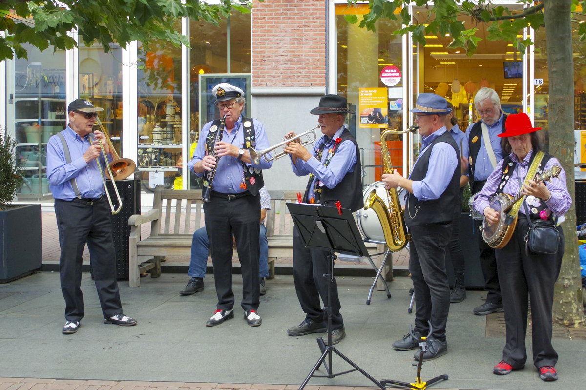 Jazz verbond generaties in Helmond dit weekend tijdens Jazz in Catstown. Een straatorkest met oudere muzikanten deed vrolijk mee, terwijl de 19-jarige Mick Vermeulen als toehoorder genoot van de muzikale improvisaties. Het liet zien dat jazzmuziek voor alle leeftijden is. Jazzmuzikanten zorgen voor een heerlijke sfeer in de binnenstad van Helmond, terwijl de terrassen goed gevuld zijn.