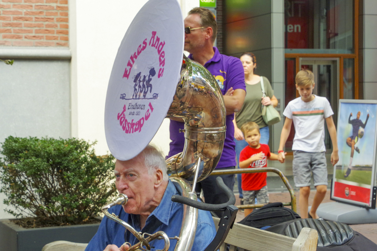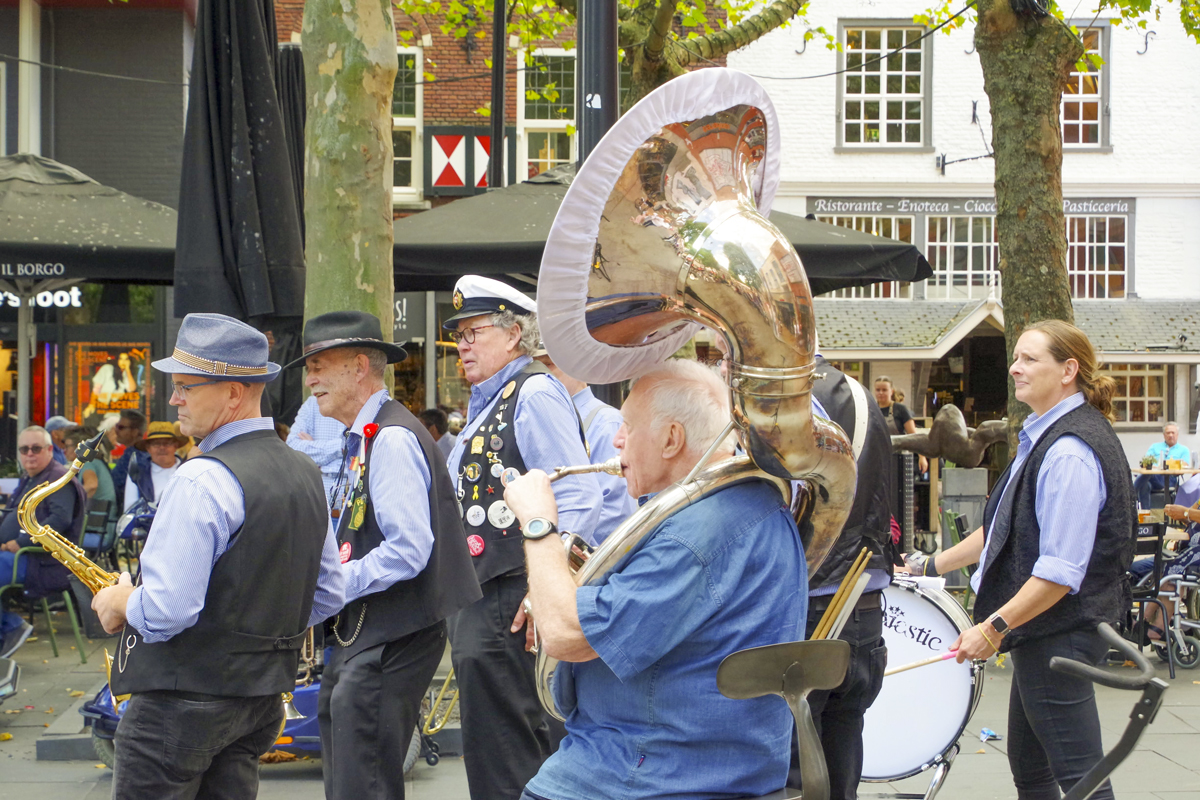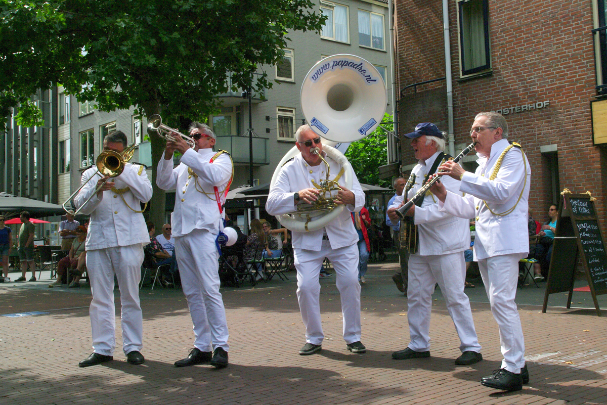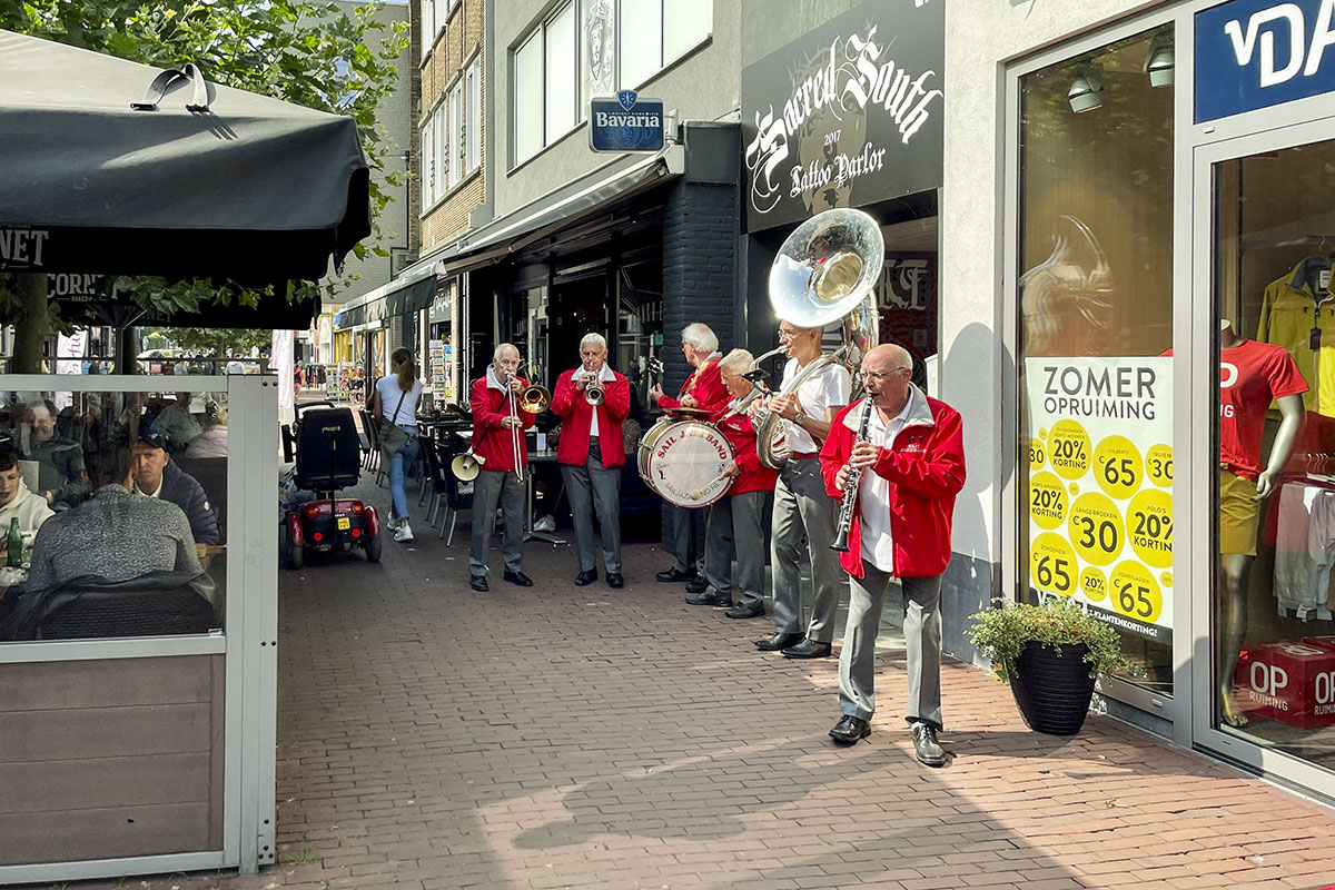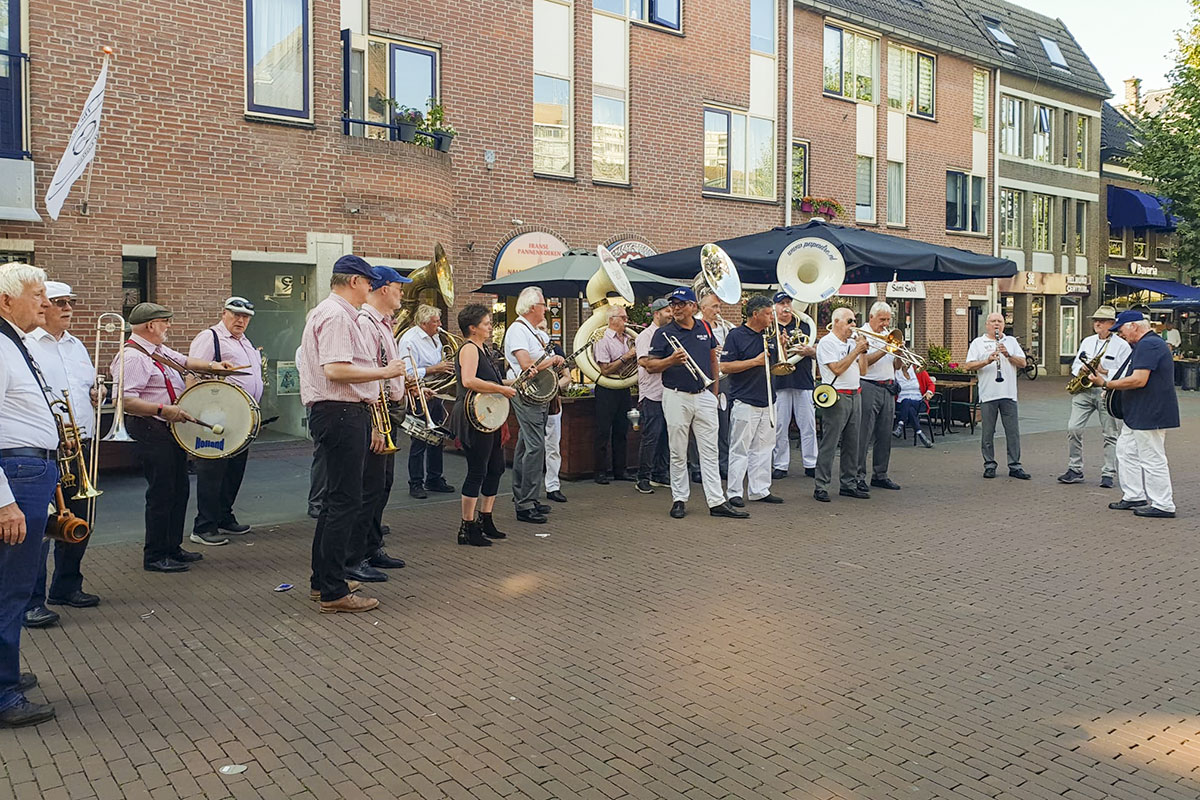 Jazz verbond generaties in Helmond dit weekend tijdens Jazz in Catstown. Een straatorkest met oudere muzikanten deed vrolijk mee, terwijl de 19-jarige Mick Vermeulen als toehoorder genoot van de muzikale improvisaties. Het liet zien dat jazzmuziek voor alle leeftijden is. Jazzmuzikanten zorgen voor een heerlijke sfeer in de binnenstad van Helmond, terwijl de terrassen goed gevuld zijn.