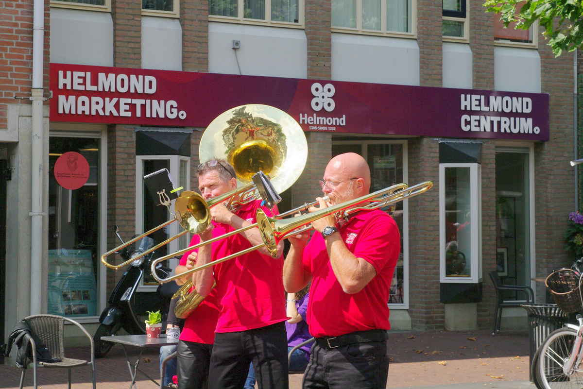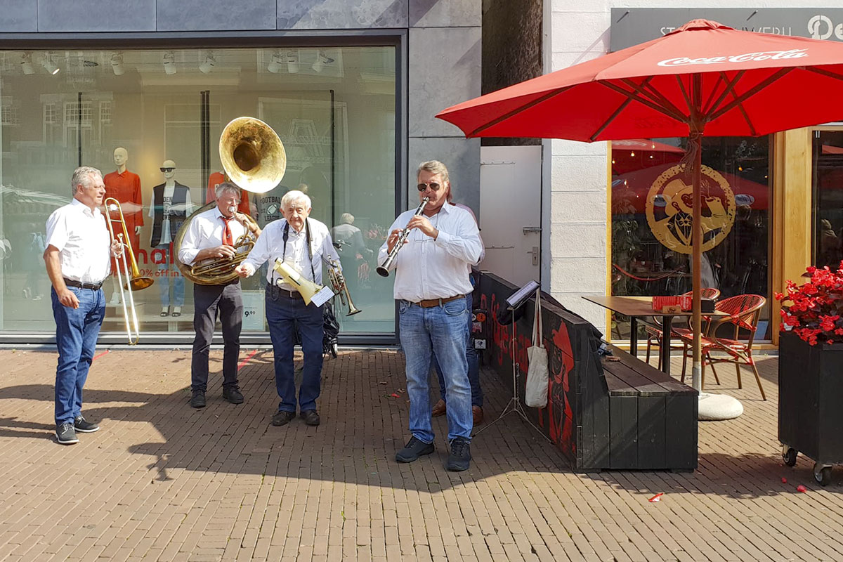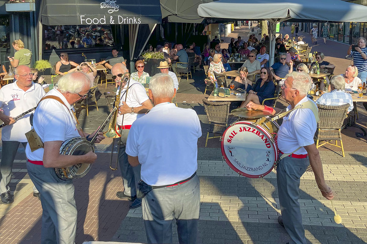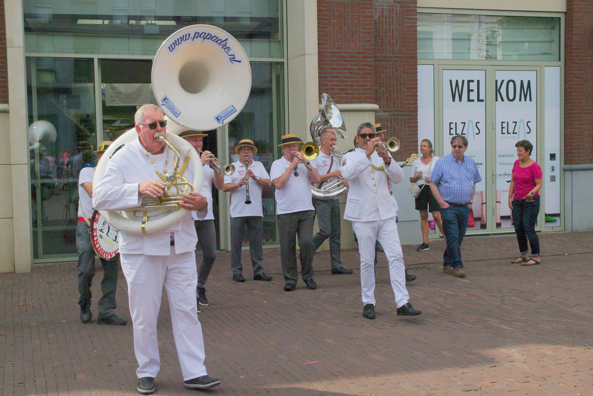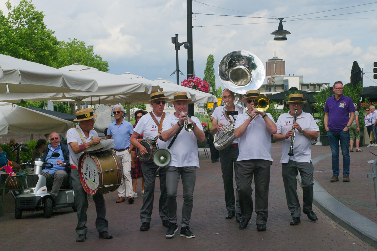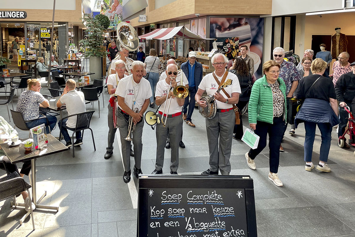 Jazz verbond generaties in Helmond dit weekend tijdens Jazz in Catstown. Een straatorkest met oudere muzikanten deed vrolijk mee, terwijl de 19-jarige Mick Vermeulen als toehoorder genoot van de muzikale improvisaties. Het liet zien dat jazzmuziek voor alle leeftijden is. Jazzmuzikanten zorgen voor een heerlijke sfeer in de binnenstad van Helmond, terwijl de terrassen goed gevuld zijn.