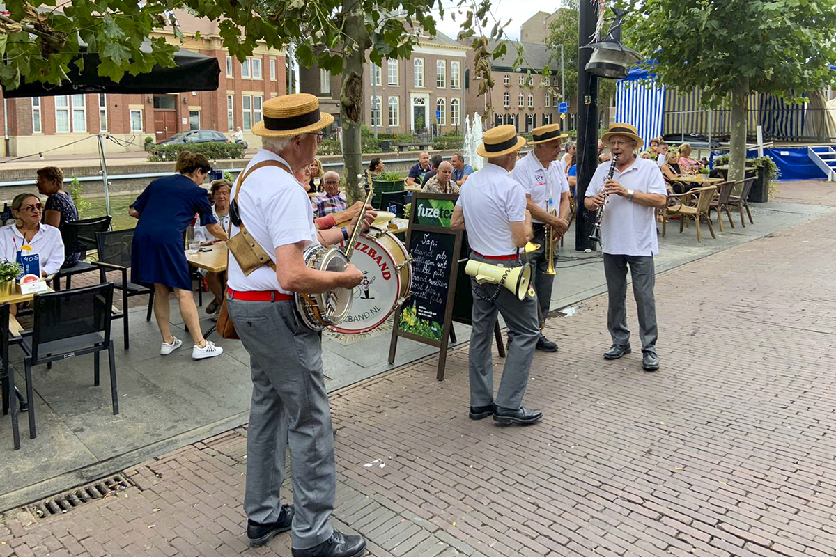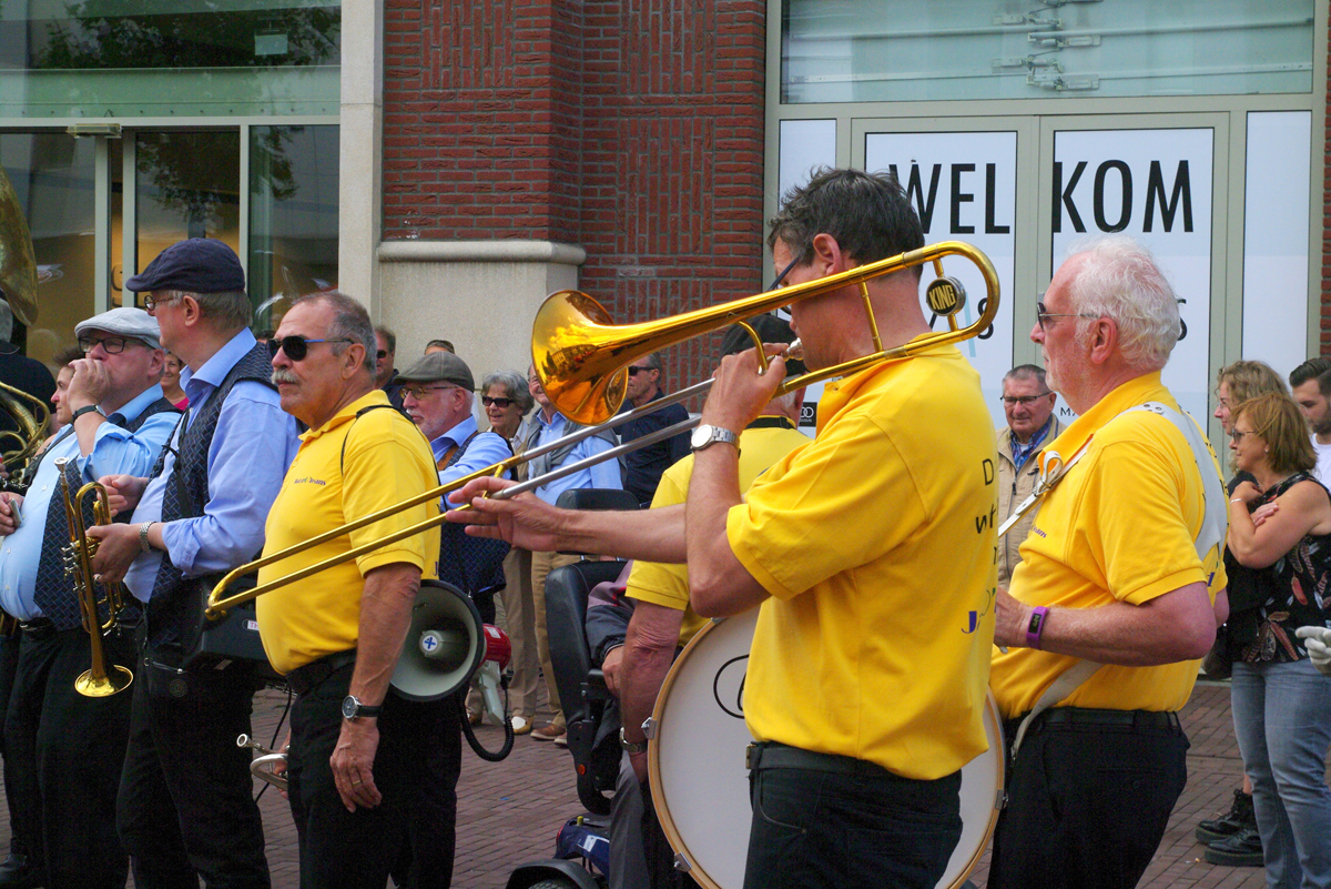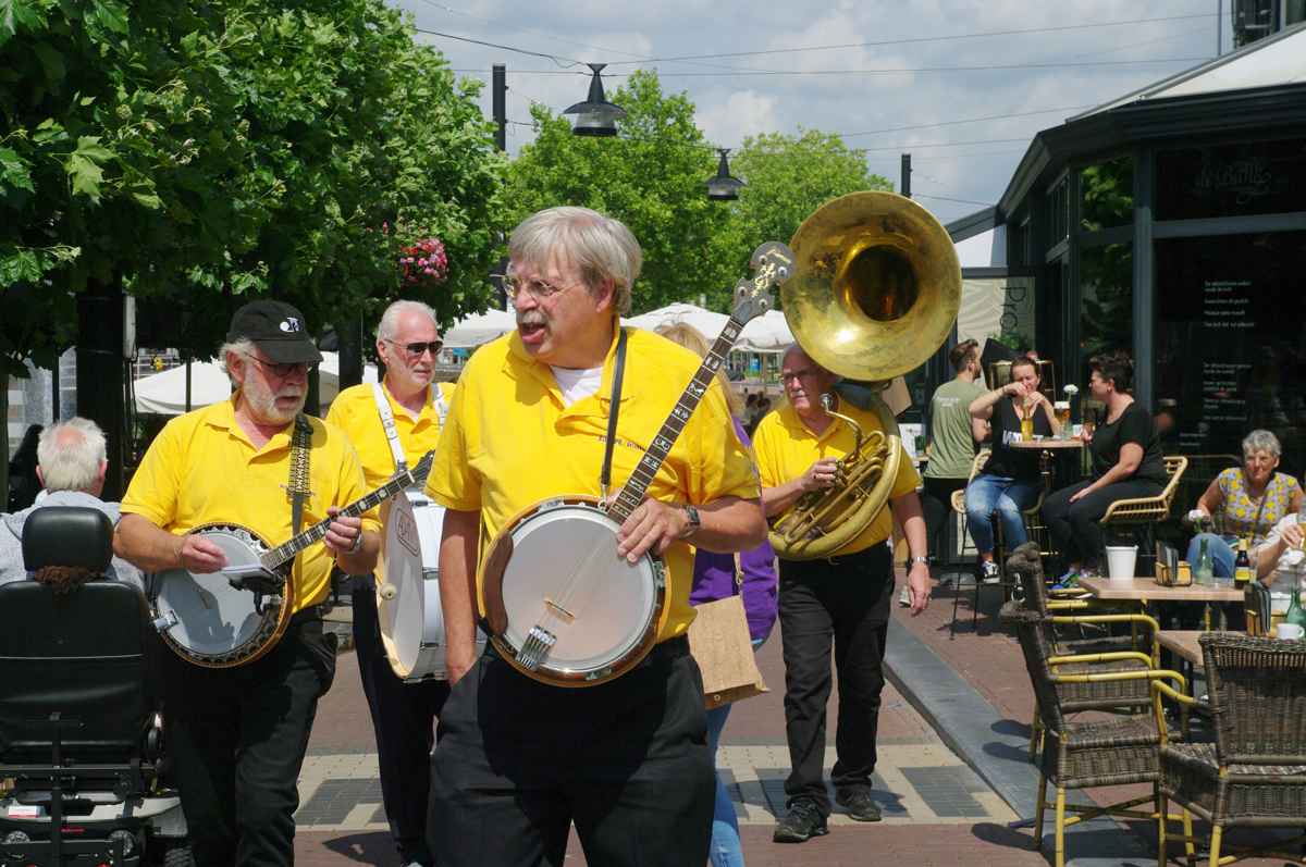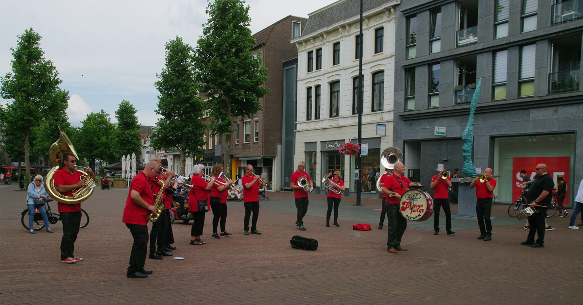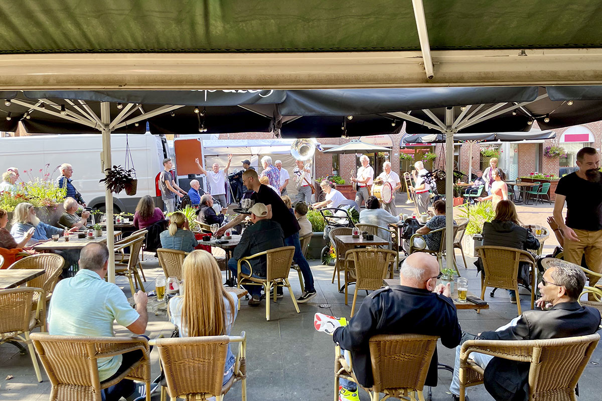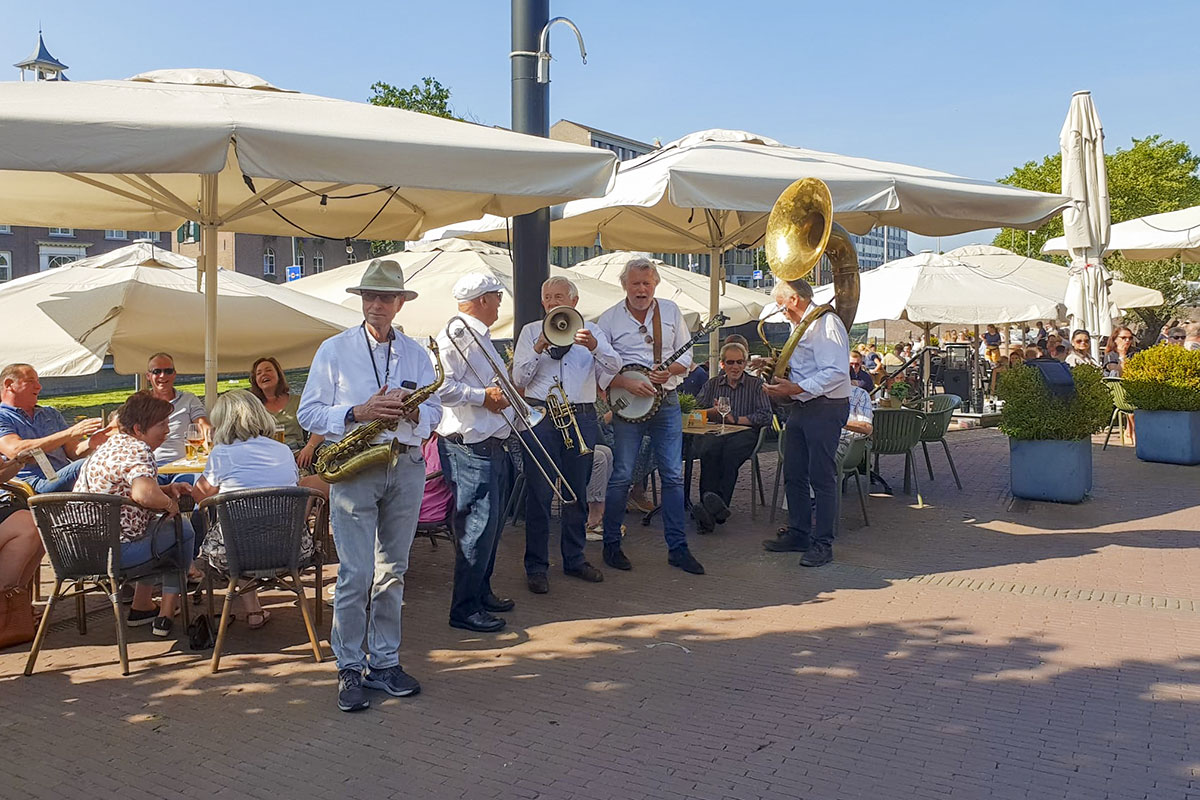 Jazz verbond generaties in Helmond dit weekend tijdens Jazz in Catstown. Een straatorkest met oudere muzikanten deed vrolijk mee, terwijl de 19-jarige Mick Vermeulen als toehoorder genoot van de muzikale improvisaties. Het liet zien dat jazzmuziek voor alle leeftijden is. Jazzmuzikanten zorgen voor een heerlijke sfeer in de binnenstad van Helmond, terwijl de terrassen goed gevuld zijn.