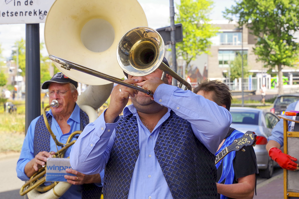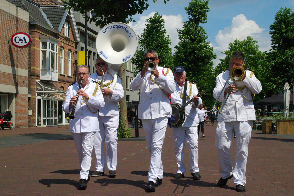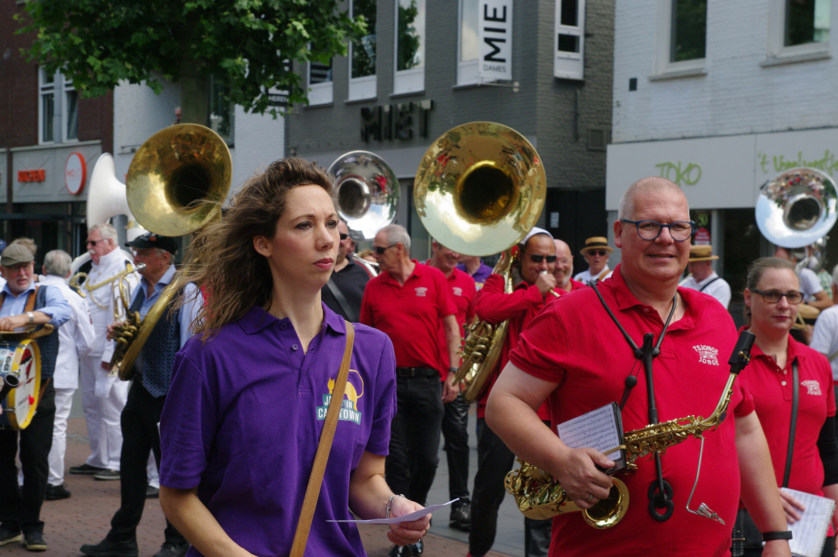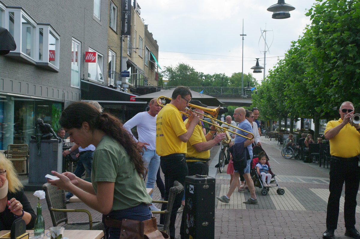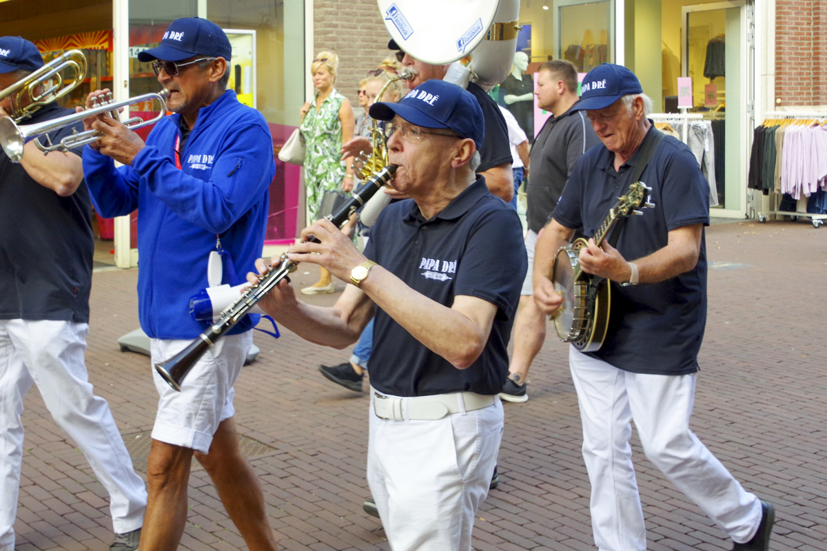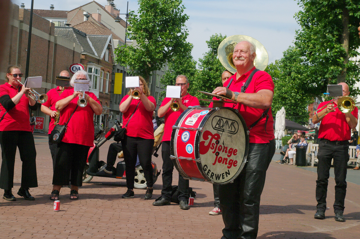 Jazz verbond generaties in Helmond dit weekend tijdens Jazz in Catstown. Een straatorkest met oudere muzikanten deed vrolijk mee, terwijl de 19-jarige Mick Vermeulen als toehoorder genoot van de muzikale improvisaties. Het liet zien dat jazzmuziek voor alle leeftijden is. Jazzmuzikanten zorgen voor een heerlijke sfeer in de binnenstad van Helmond, terwijl de terrassen goed gevuld zijn.