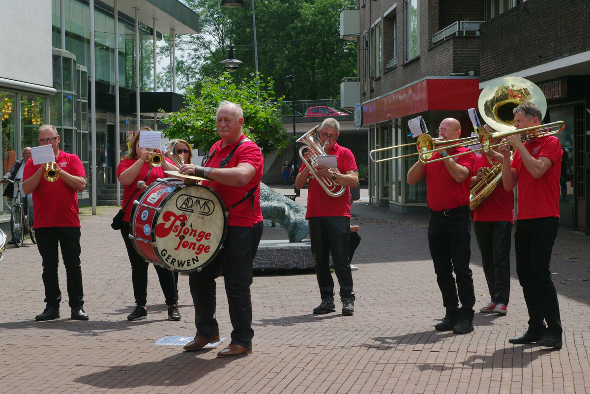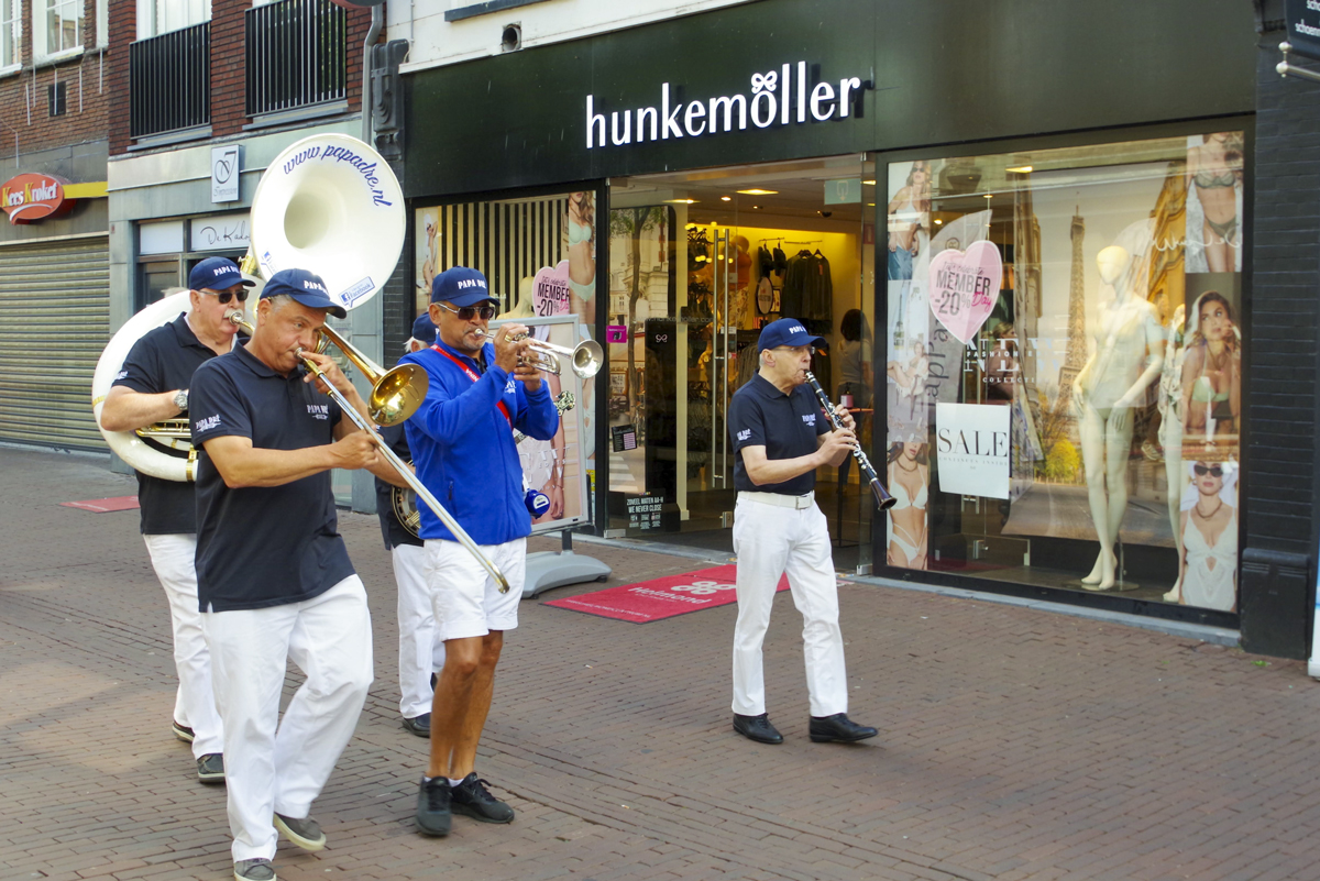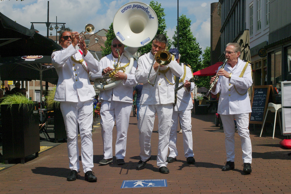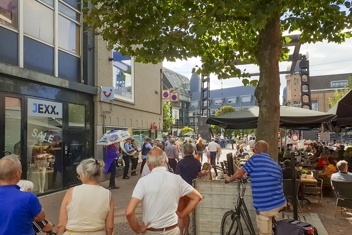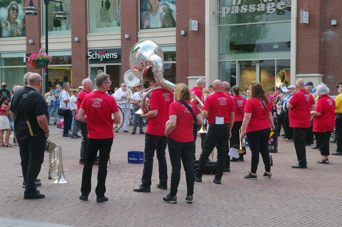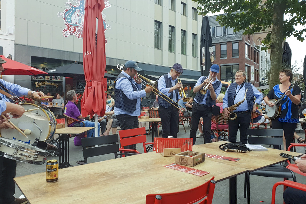 Jazz verbond generaties in Helmond dit weekend tijdens Jazz in Catstown. Een straatorkest met oudere muzikanten deed vrolijk mee, terwijl de 19-jarige Mick Vermeulen als toehoorder genoot van de muzikale improvisaties. Het liet zien dat jazzmuziek voor alle leeftijden is. Jazzmuzikanten zorgen voor een heerlijke sfeer in de binnenstad van Helmond, terwijl de terrassen goed gevuld zijn.