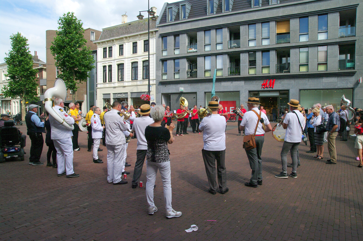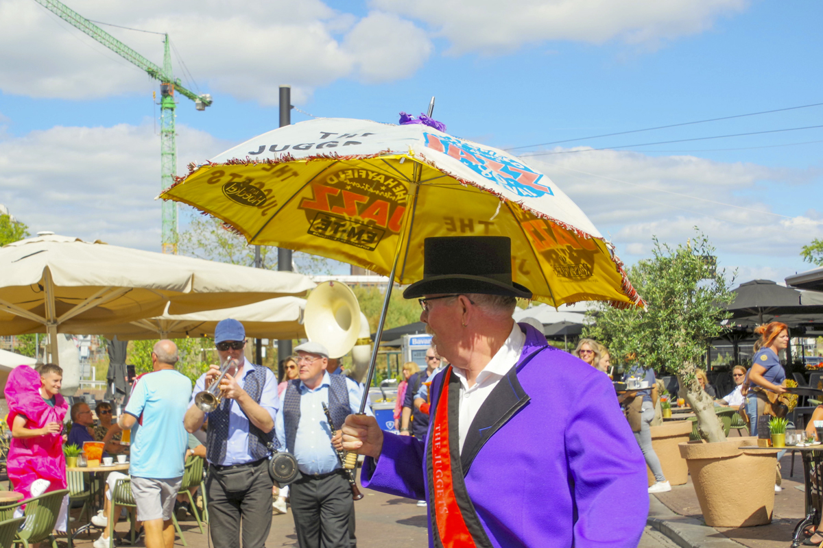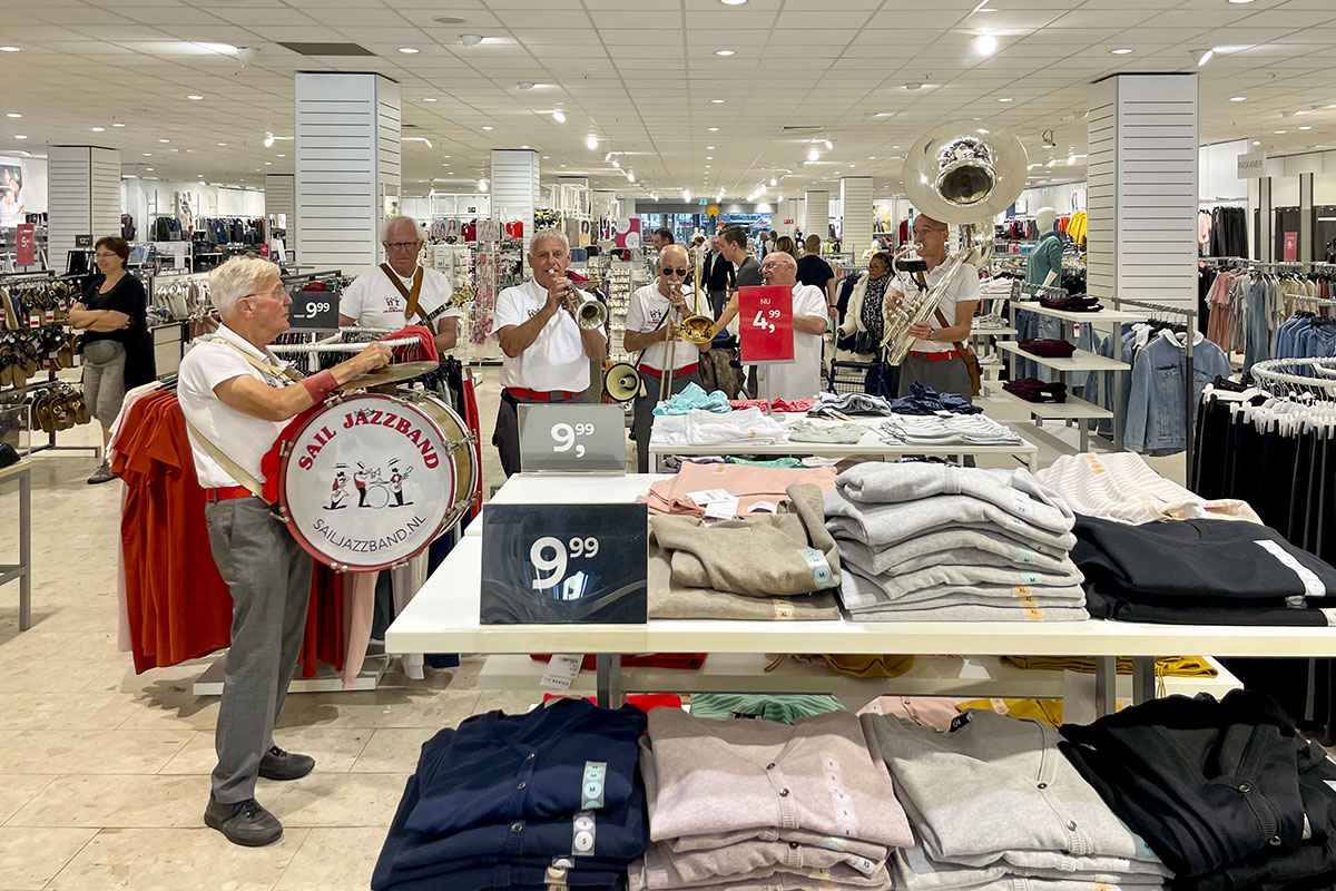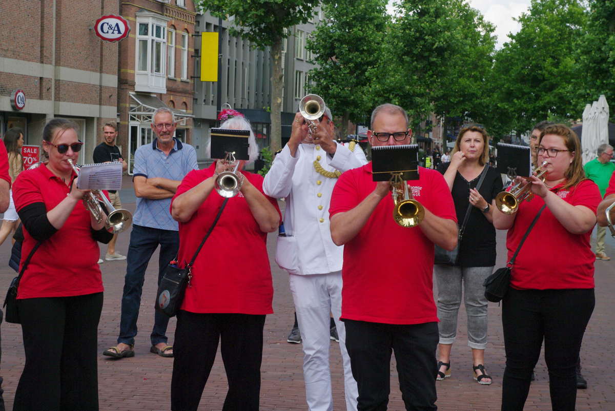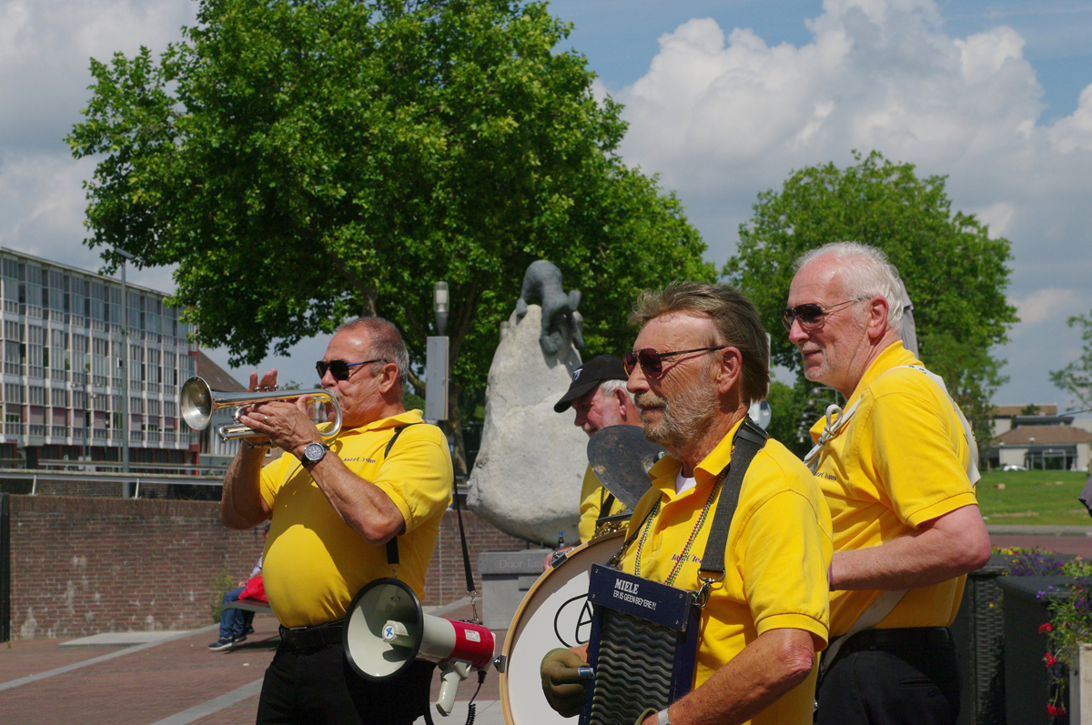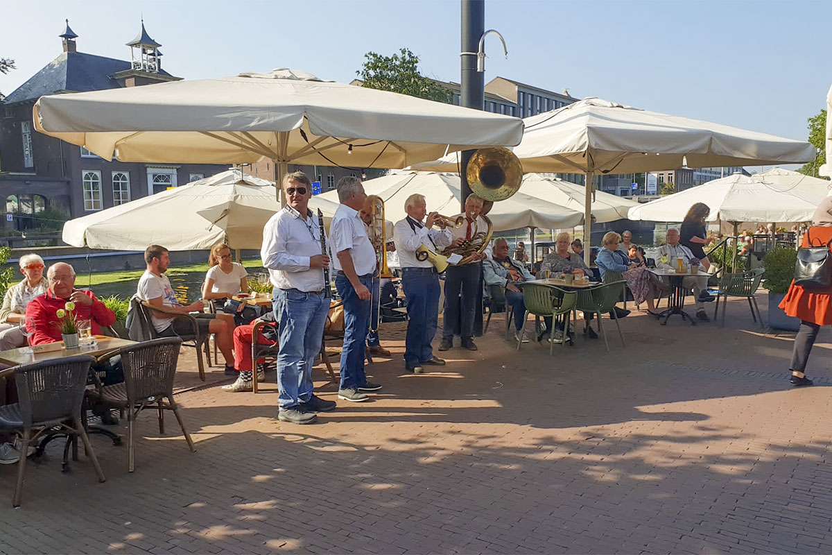 Jazz verbond generaties in Helmond dit weekend tijdens Jazz in Catstown. Een straatorkest met oudere muzikanten deed vrolijk mee, terwijl de 19-jarige Mick Vermeulen als toehoorder genoot van de muzikale improvisaties. Het liet zien dat jazzmuziek voor alle leeftijden is. Jazzmuzikanten zorgen voor een heerlijke sfeer in de binnenstad van Helmond, terwijl de terrassen goed gevuld zijn.